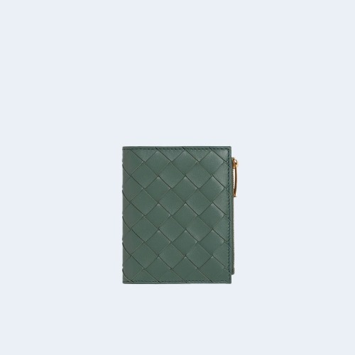 스몰 인트레치아토 폴더형 지퍼 지갑 그린
